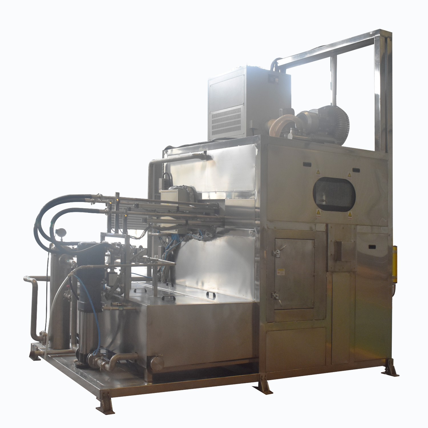 該設(shè)備為高潔凈度清洗機(jī),采用高壓旋轉(zhuǎn)+探入式清洗工藝。該設(shè)備由高壓噴淋清洗工位、吹干工位、清洗固定工裝、儲氣罐、儲液槽、探入式清洗系統(tǒng)、管路系統(tǒng)、觸摸屏、PLC智能控制系統(tǒng)等。